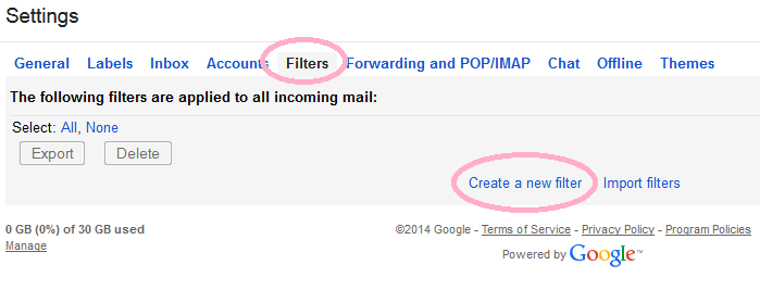 Create Gmail Filters