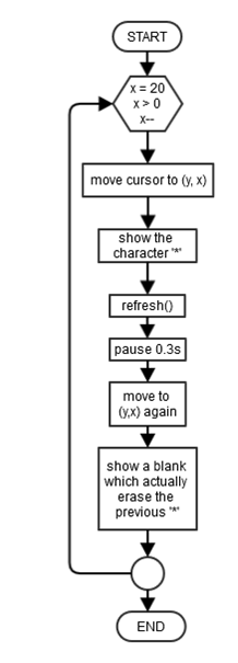 Use the "curses" library to write a program, which shows a star moving