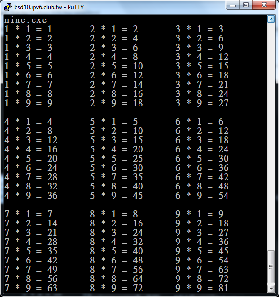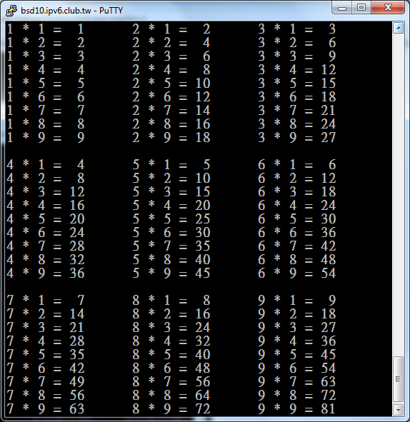 cout << i << '*' << j << '=' << i*j << endl;