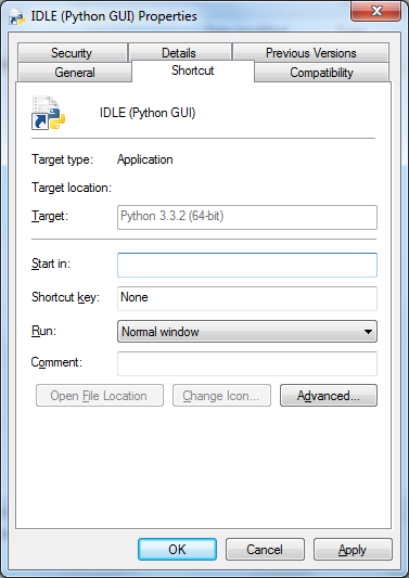 - The property of your IDLE icon which you started the Python